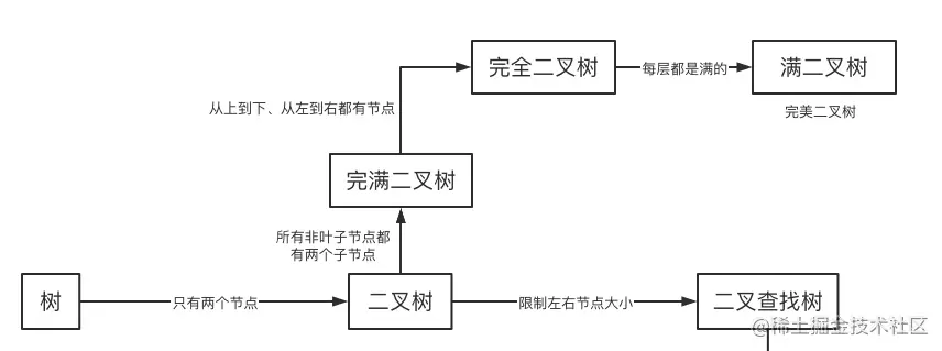 - 满二叉树是是在完全二叉树的基础上,加上每层的节点都是满的这个限制。