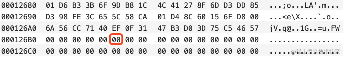 红色标记的字节就是Code Signature结束的地方,在这之后的内容全部由0x00填充,就非实体内容了。