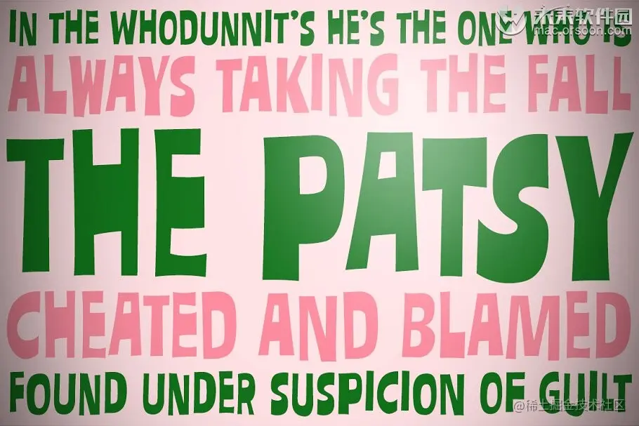 未来软件园准备了一组个性无衬线字体Patsy,你可以将这组个性无衬线英文字体安装到mac电脑的字体册中使用,设计海报、标签、宣传单、服装、卡片、包装封面、标题、邀请函等都可以使用这组无衬线英文字体,喜欢的朋友可以来下载哦!