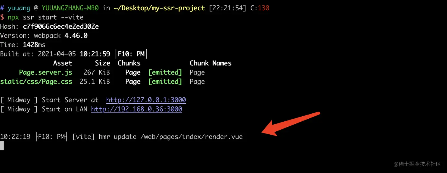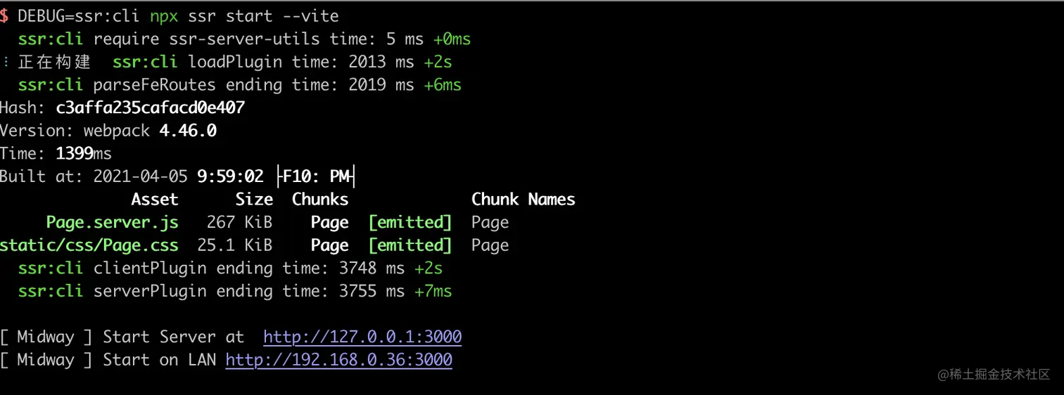 $ npx ssr start --vite # 建议在 package.json 中添加 "start:vite": "ssr start --vite"