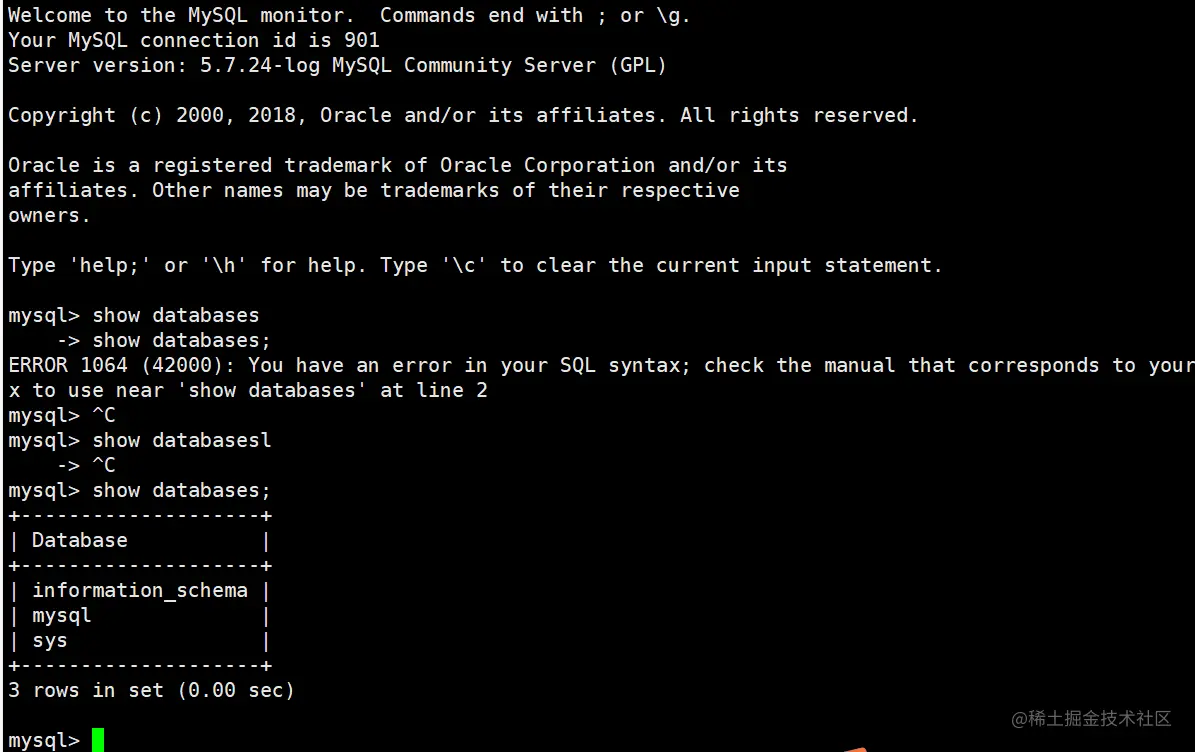 赶紧登上云服务器,发现MySQL服务还在, show databases;命令看下数据库