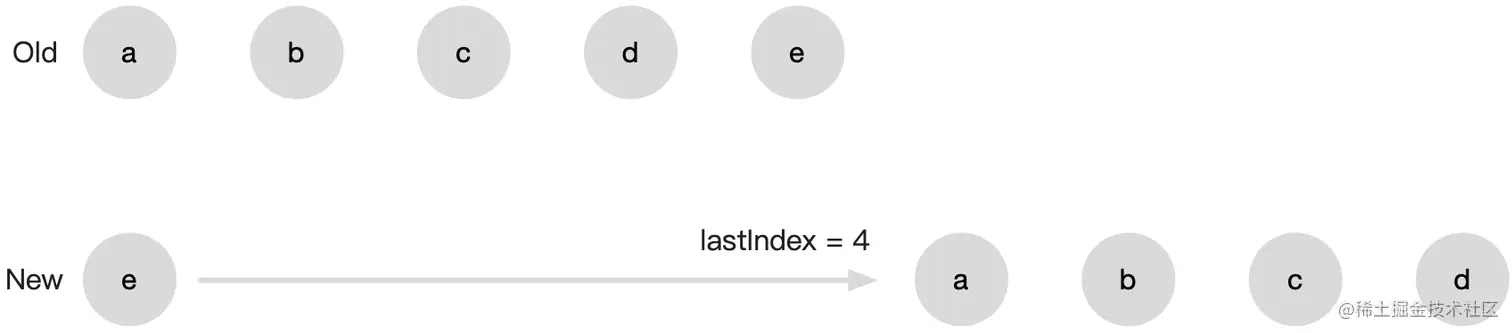 方法就是记录 lastIndex = max(oldIndex, newIndex) => lastIndex = max(4, 0),下一次移动到 lastIndex + 1 也就是 5: