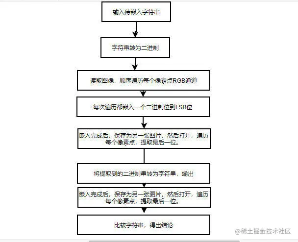 顺序嵌入很简单,遍历每个像素点,然后将二进制嵌入最后一位即第八位即可。