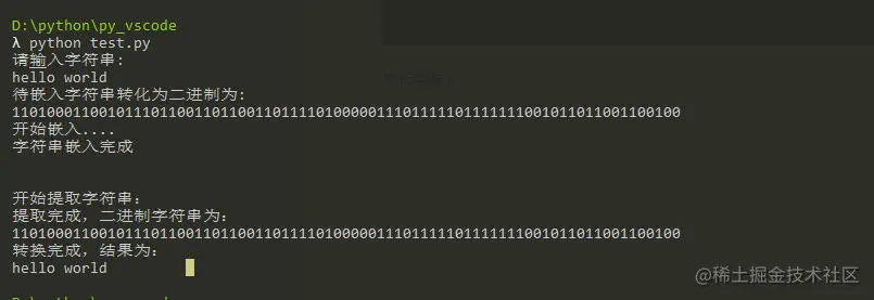 print("提取完成,二进制字符串为:\n%s"%result)