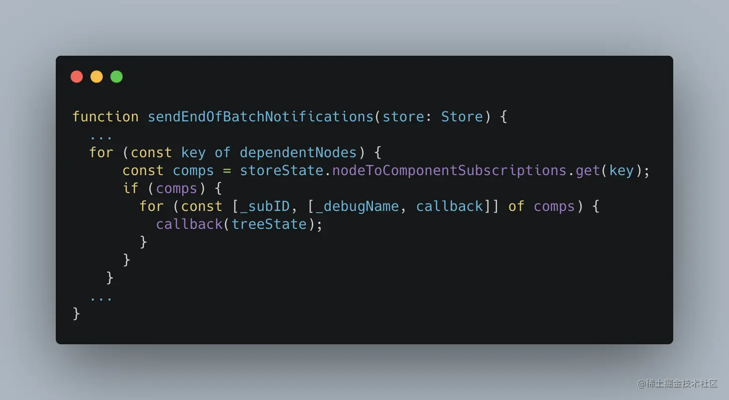 其中的 notifyBatcherOfChange.current 则是在 <Batcher> 组件中通过 useState 的形式进行 state 的更新,从而触发 useEffect,执行 sendEndOfBatchNotifications