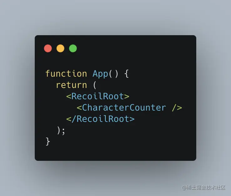 与 Redux 类似,在使用全局数据时,需要在根组件上包一个组件,在 Recoil 中,需要包裹上组件 RecoilRoot。