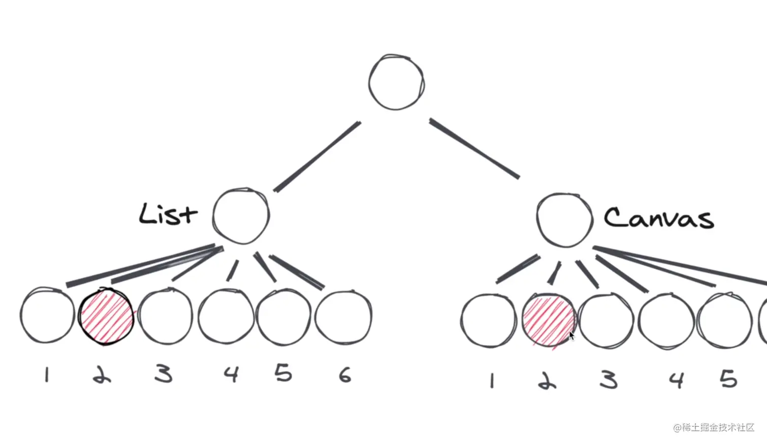 在 List 和 Canvas 中的第二个子组件中,如果有状态需要进行共享,常见的方法是,将状态提升到最近的公共祖先节点上,但是这样带来的问题是,如果不进行额外的处理,会造成全局的重新渲染。当然,可以使用 useMemo + immutable 进行优化。另外一种解决方法是使用 Context,使用 Context 如果想解决全局渲染的问题,需要将需要共享的值放在一个独立的 Context 中,这样带来的问题是,我们的组件上,如果有更多的状态需要共享,就需要包裹很多的 Provider,维护起来也比较困难。