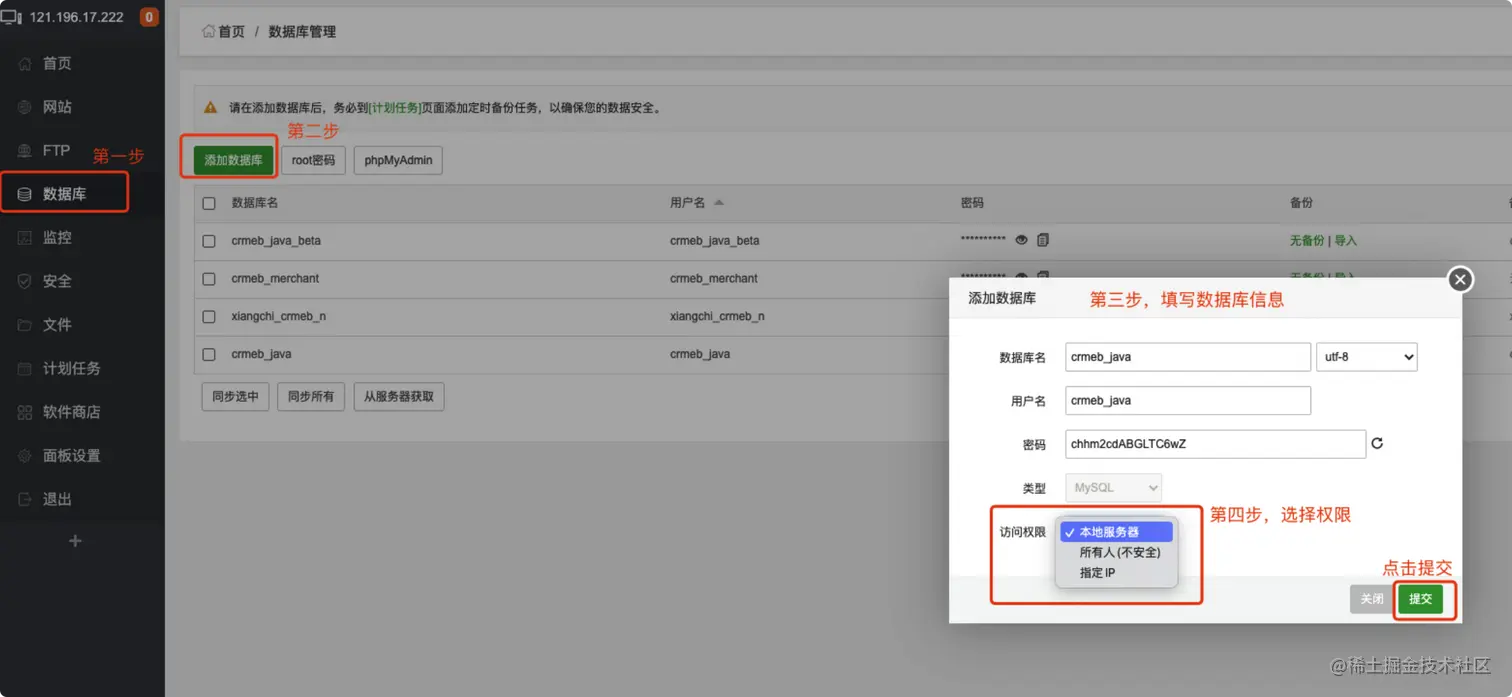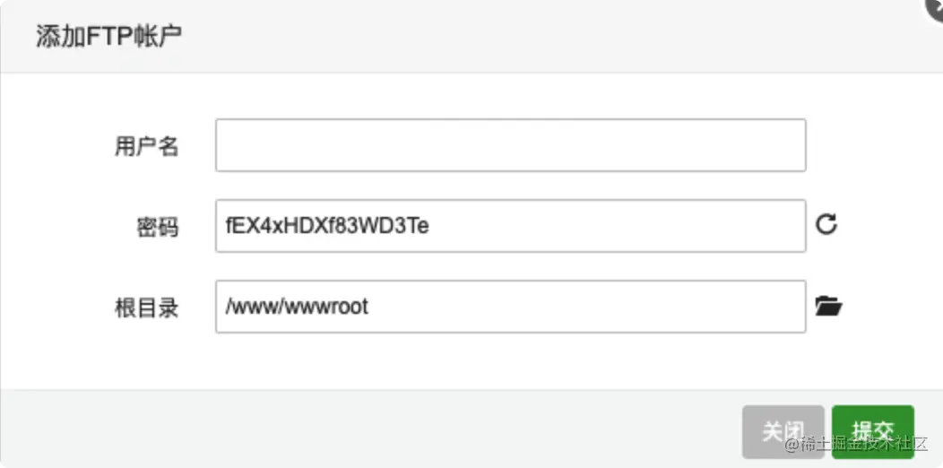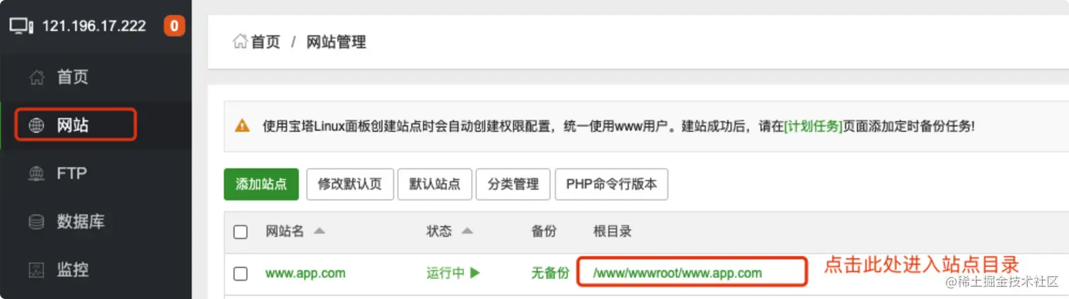 - ftp此处可不创建,如果需要后面可以在ftp模块创建,注意ftp需要开启21端口