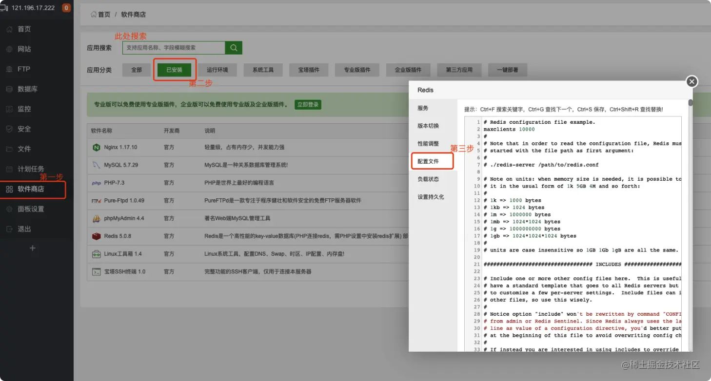 - 在宝塔 软件商店中搜索安装即可,密码设置