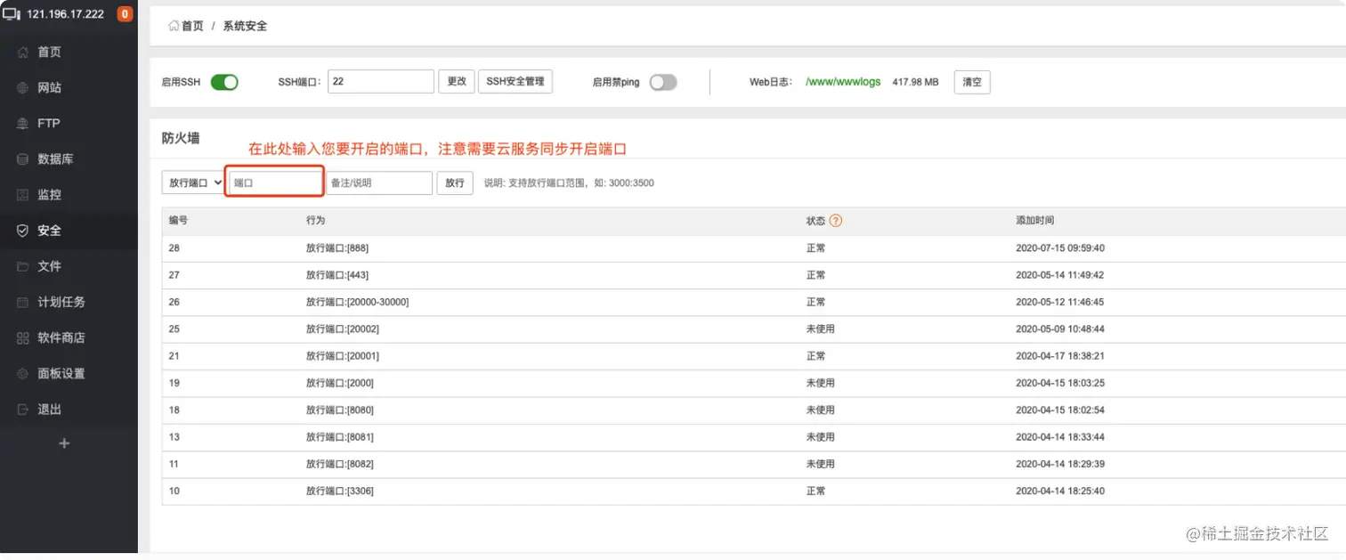 - 端口放行