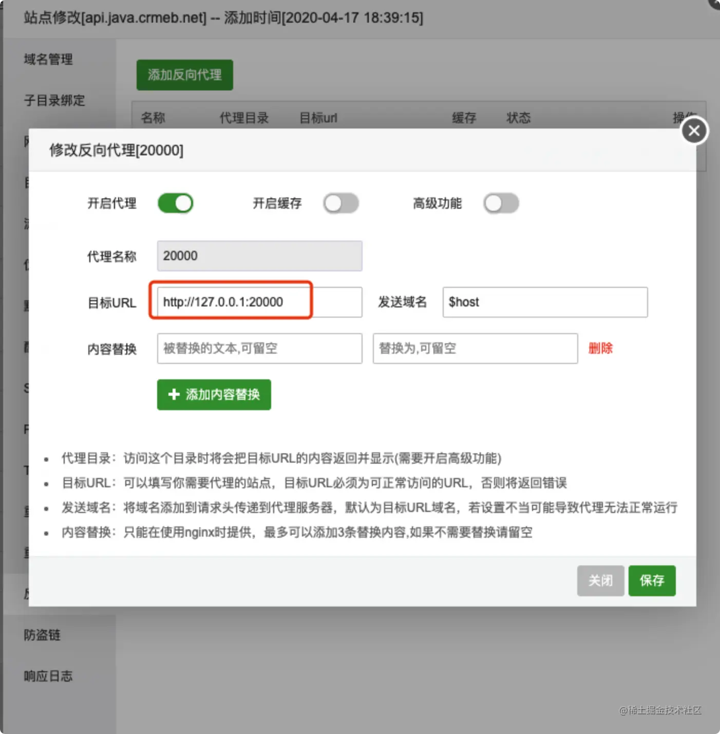 设置反向代理 目标url为