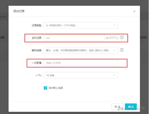 域名解析配置,以阿里云域名为例: