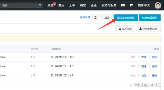 12.点击右上方添加安全组规则