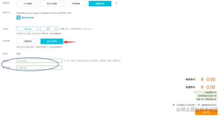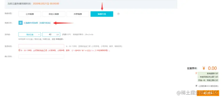 6.镜像类型选择:镜像市场,然后点击从镜像市场选择(含操作系统)