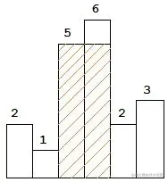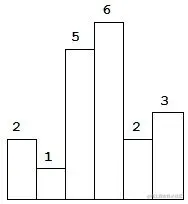 以上是柱状图的示例,其中每个柱子的宽度为 1,给定的高度为 [2,1,5,6,2,3]。