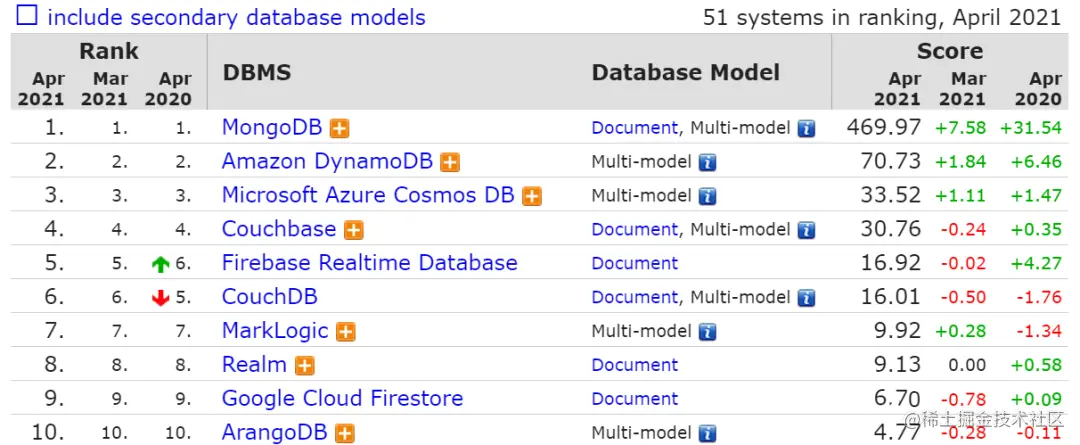 文档数据库前 10 名