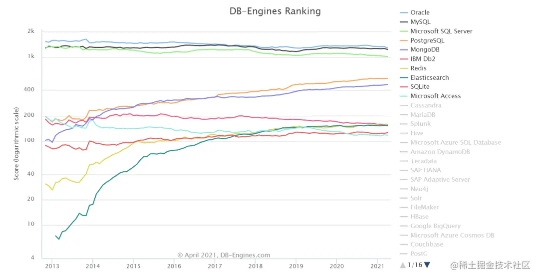 DB-Engines 根据流行度对数据库管理系统进行排名,排名每月更新一次。