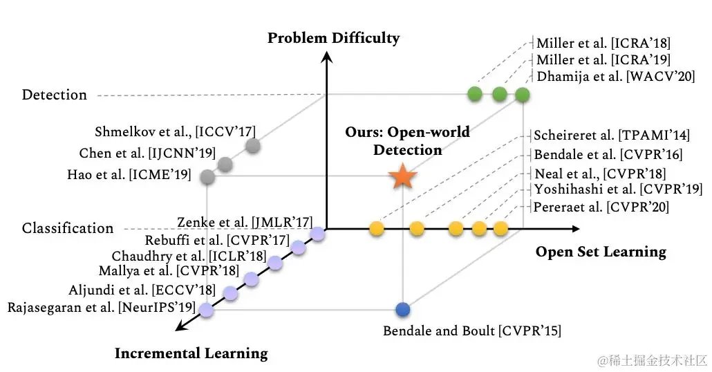 - Open Set Learning,即在没有明确监督的情况下,将尚未引入的目标识别为“未知”;