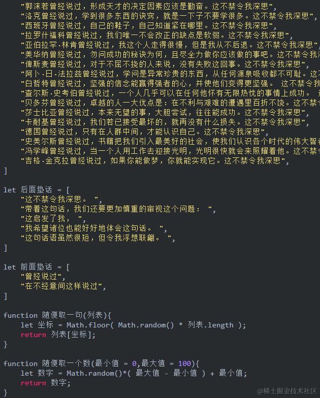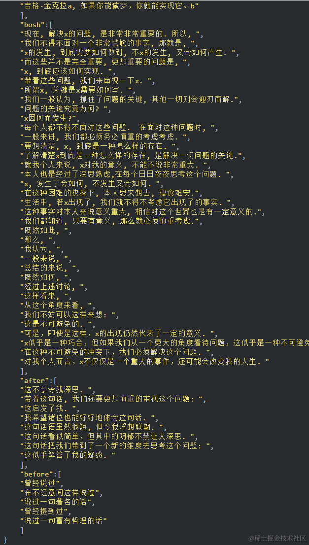 基本是通过随机抽取的方式,将 名人名言、主题、论述、前后垫话组合在一起,所以读起来觉得有点意思,但是又没啥用!\