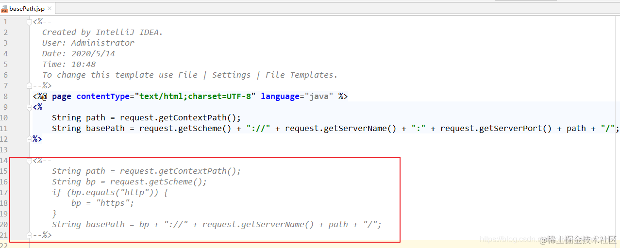 jsp中的https强转访问 嘉戈 2021-04-06 95 阅读1分钟 封装代码块 include引用 注意: 注释的方式: <%-- 注释的内容 --%> 千万不要为了省事,直接全选Ctrl+/,尾部和这样混掉<%-- <% --%>,它是区分不出来注释的开始和结尾的。
