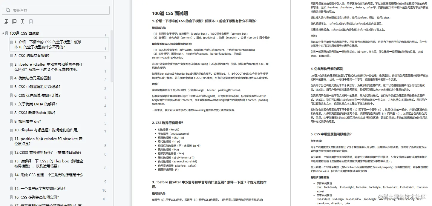 篇幅有限,只有题目和部分答案,需要资料【可以点击这里】领取100道 CSS 面试题,JavaScript 基础面试题文档(包含题目和答案)
