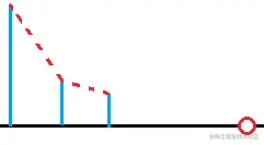 - 2)一旦出现三个高度单调递减的建筑,它们的形状组成一个下凹的形状,那么中间的那个建筑,一定是不可能成为阻碍视角的建筑,所以可以认为中间的建筑不存在(可以随便找个的坐标轴上的点往中间的建筑做连线,一定是交在第一个建筑或者第三个建筑上);