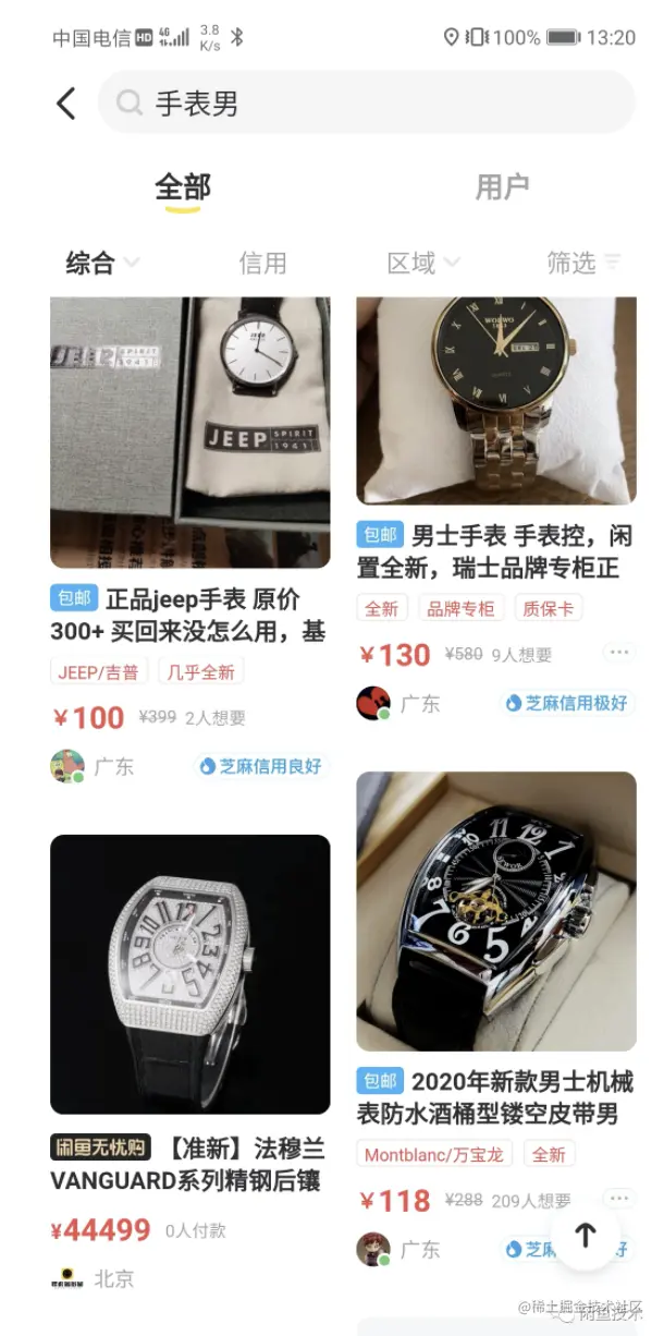 闲鱼无忧购商品与主引擎C2C商品混排效果如下: