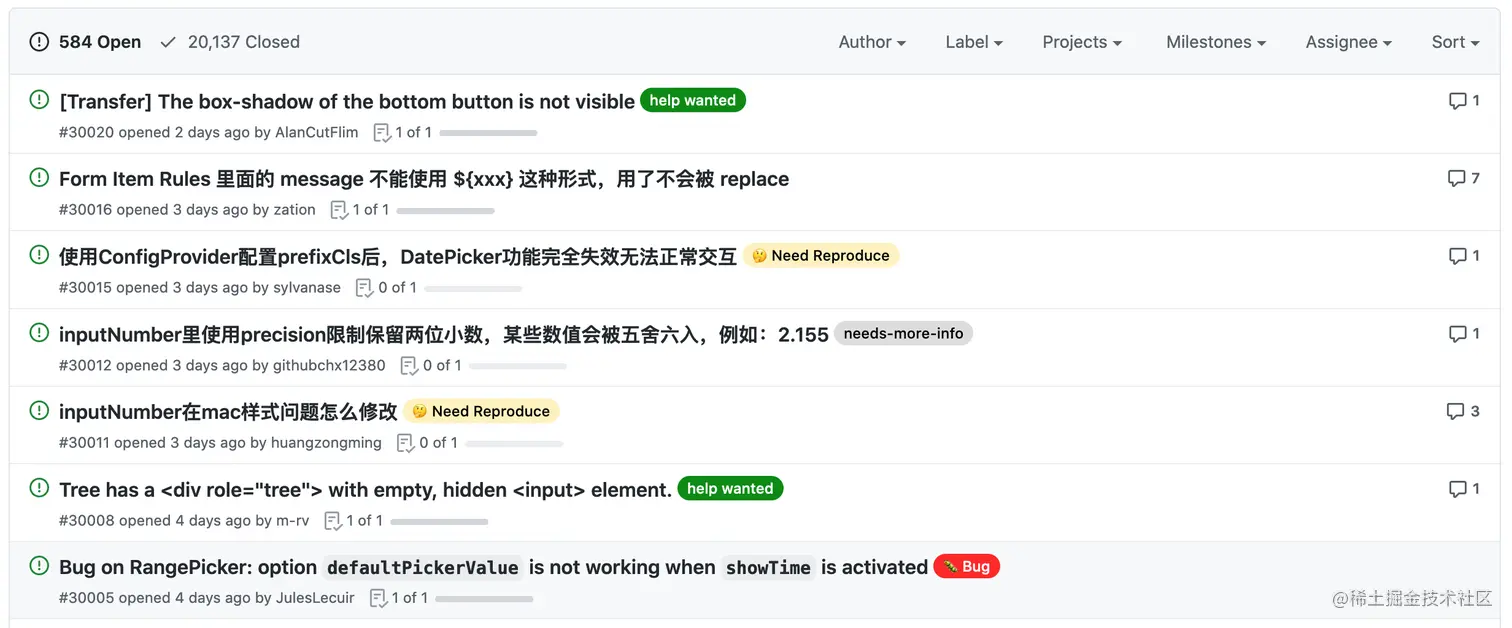 比如阿里的 Ant Design 项目,还有近 600 个待解决的问题!