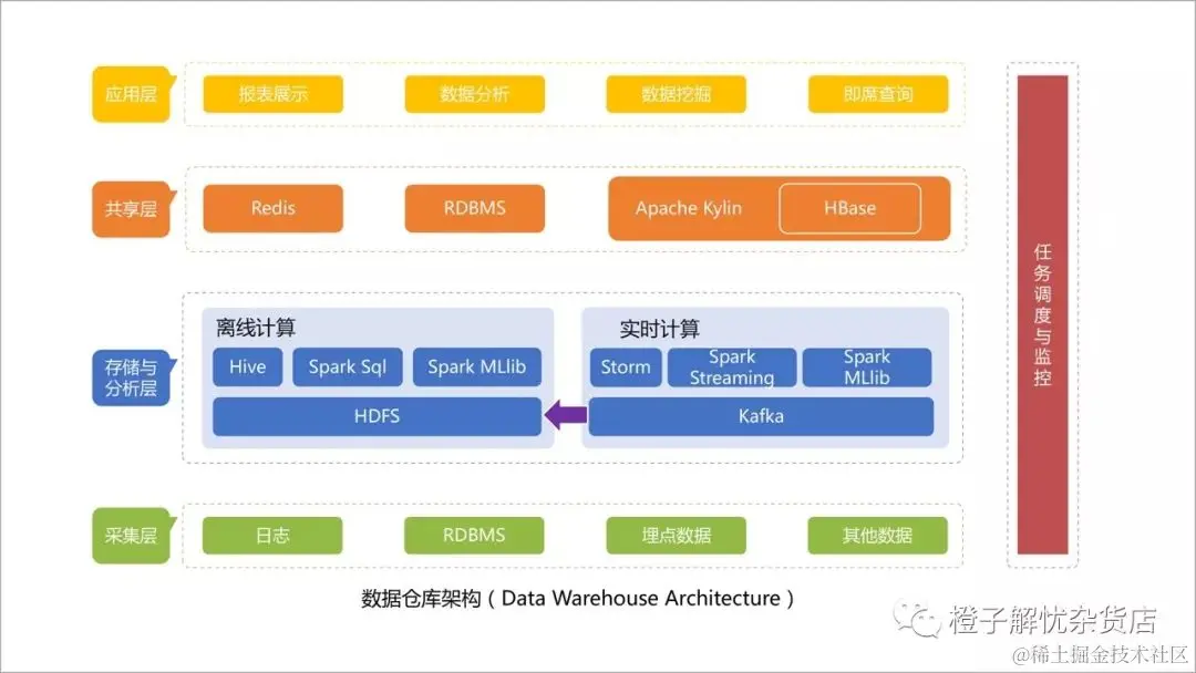 最终,随着客户、订单和外部流量的逐步上升,数据量从GB发展成TB级别,数据库通过普通查询存在较大的压力,只能做升级改造,于是就有了数据仓库的诞生。