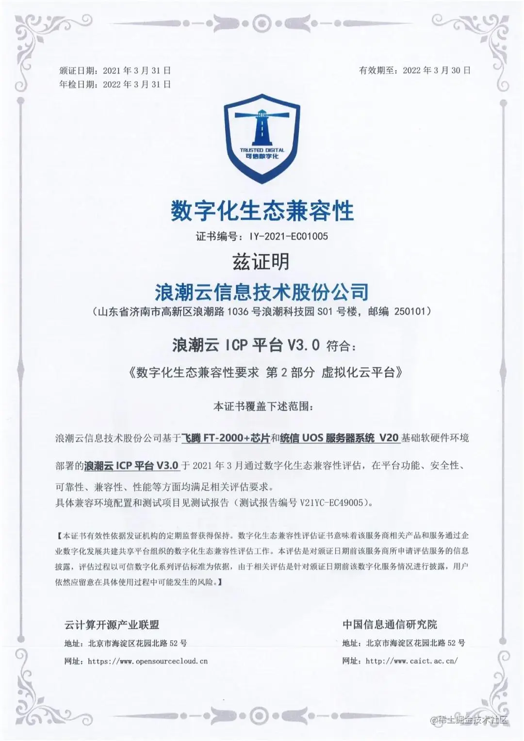 大会现场,可信数字化评估和转型IOMM成熟度评估结果重磅发布,浪潮云ICP平台以先进的平台能力和产品能力首批荣获《数字化生态兼容性》认证。目前,浪潮云ICP已应用在政府、电商、零售、金融、制造等对数据敏感性高、隐私性强、安全性有要求的相关行业。