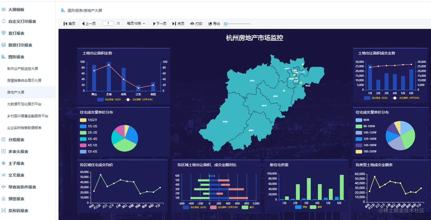 - 大屏设计器有几十种图表样式,可自由拼接、组合,设计炫酷大屏