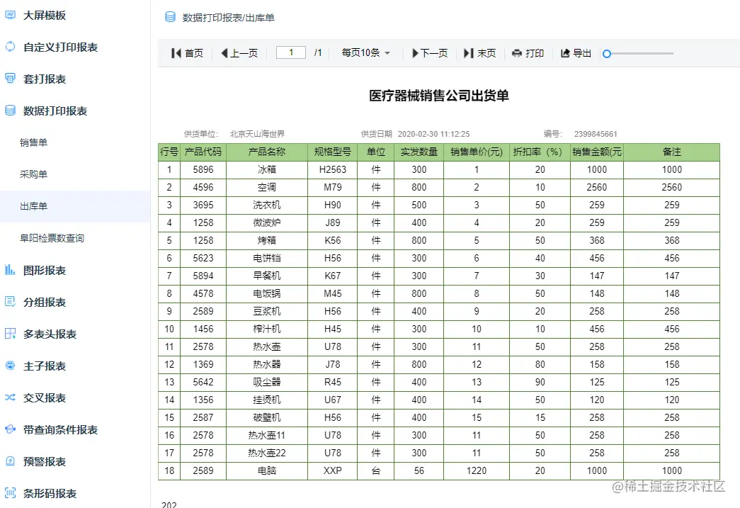 - 支持多种类型的单据、大屏,如出入库单、销售单、财务报表、合同、监控大屏、旅游数据大屏等