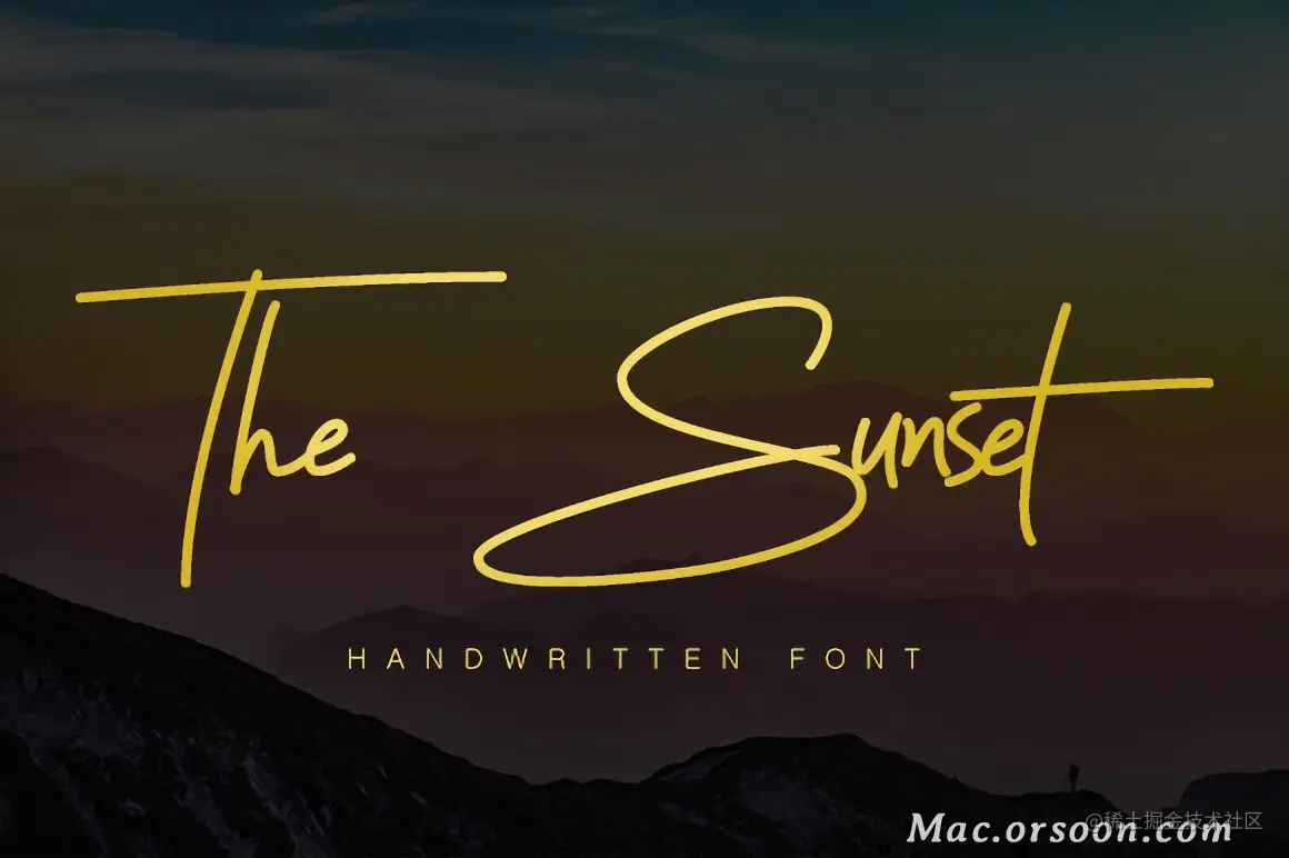现代手写字体The Sunset将把各种设计项目提升到最高水平,无论是品牌,标题,婚礼设计,邀请函,签名,徽标,标签等等!