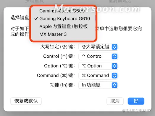 但大部分优秀的机械键盘是不带 macOS 驱动的,所以在使用的时候,不免要重新熟悉键位。