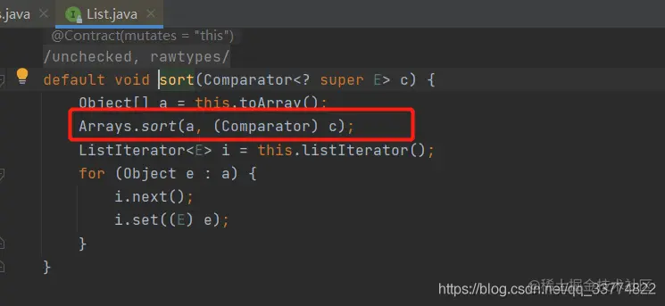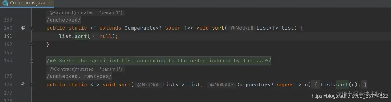 对已知集合c进行排序,底层还是调用的Arrays的sort方法。这部分在之前的文章已经讲过了,Java集合框架Arrays的常见方法