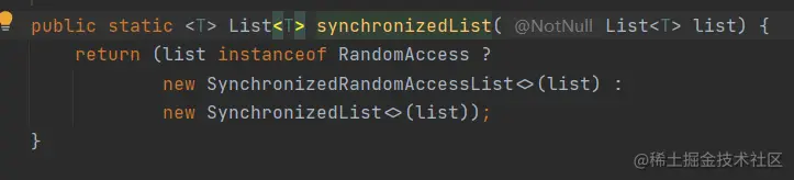 Collections提供了很多线程安全的集合,针对 List、Map、Set 都有提供,我们先来看下线程安全的集合