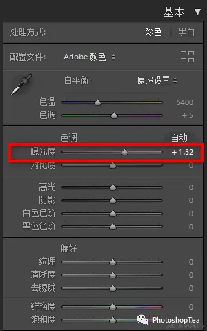 4、现阶段 Lightroom 版本,执行命令之后,改变的仅是曝光度滑块,其它滑块都不会变。