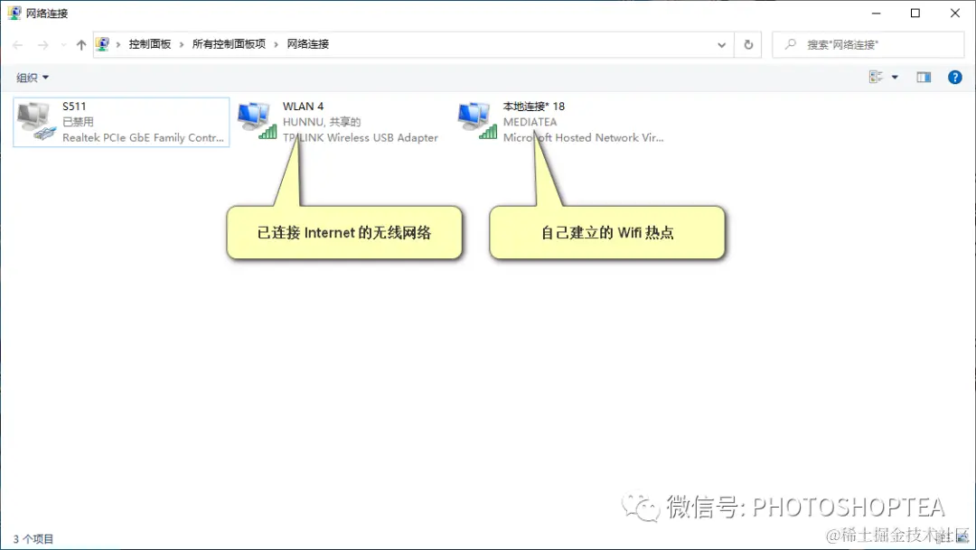 即使没有接有线网络,如果无线网卡能连接到 Internet,且网卡本身支持“承载网络”模式,即可用它来创建 Wifi 热点。