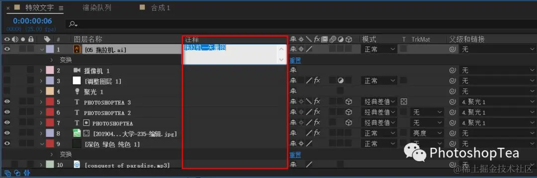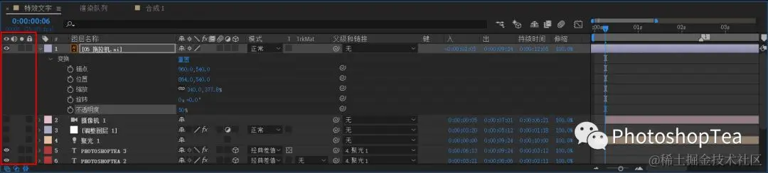 临时隐藏图层,以节省时间轴空间,但在合成画面里仍然存在并起作用。