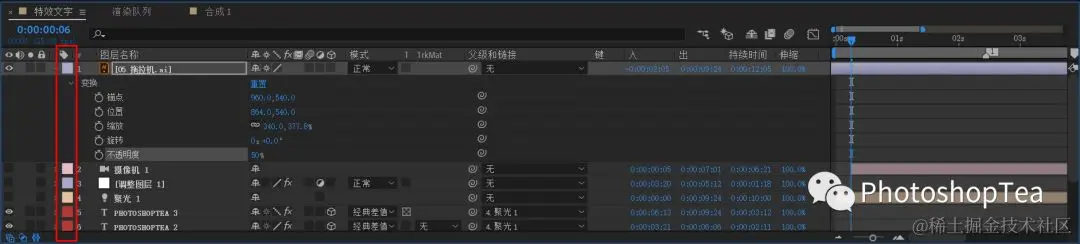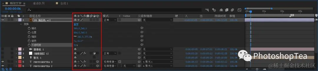 常称为“塌陷”开关,其主要作用是:启用后,将预合成里的原始图层“提升”为宿主合成的图层来处理,且预合成的变换将在最后进行渲染。