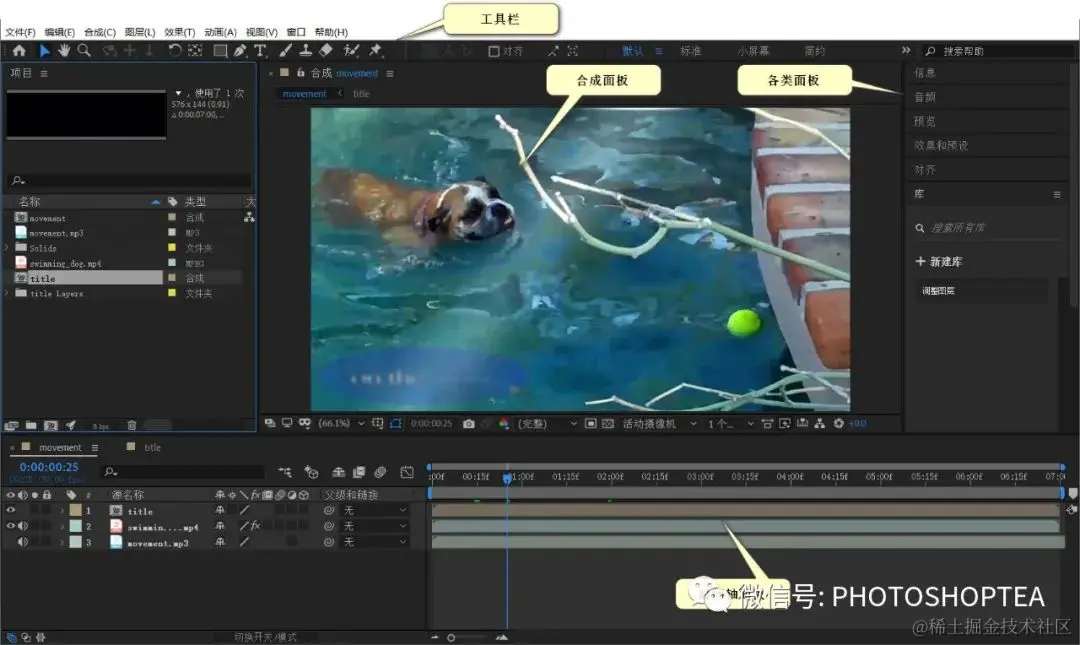 合成 Composition本质上就是一个容器,用于在时间和空间上组合素材、应用特效以及生成输出。