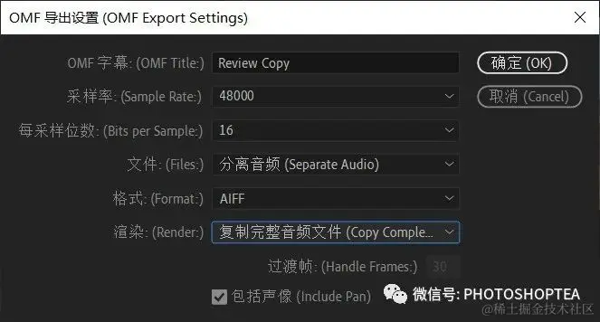 Pr菜单:文件/导出/ OMF