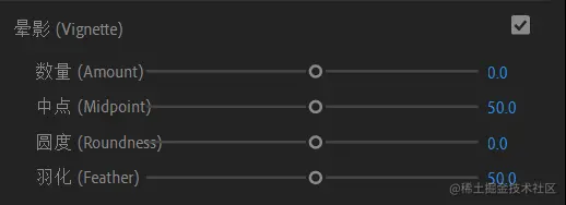 晕影控件可控制边缘的大小、形状以及变亮或变暗量。