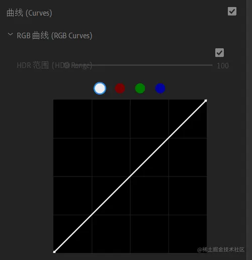 与常规的 RGB 曲线类似,主曲线控制亮度,还可以单独调整红、绿、蓝通道曲线。