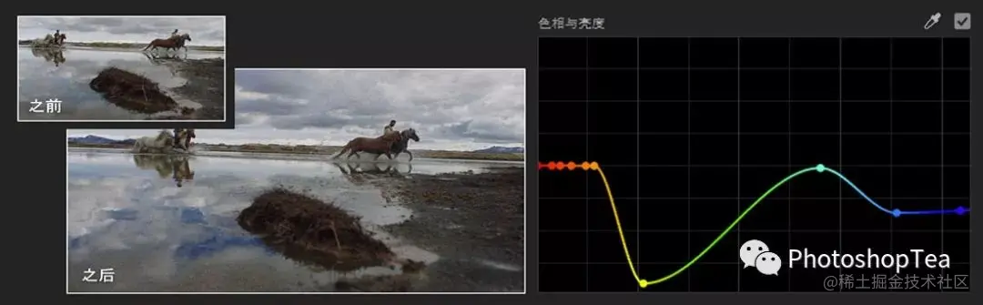 选择色相范围并调整其亮度。