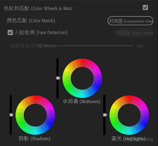 --阴影色彩轮/高光色彩轮:调整阴影和高光中的色彩值。