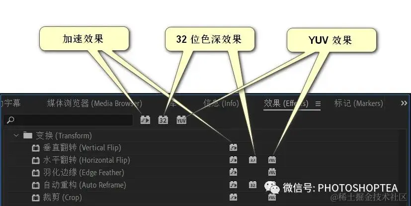 在调色时,那些不带 YUV 图标的效果可能因为使用本地 RGB 色彩空间的原因,导致曝光或颜色调整不准确。\