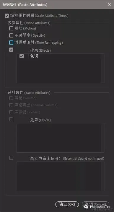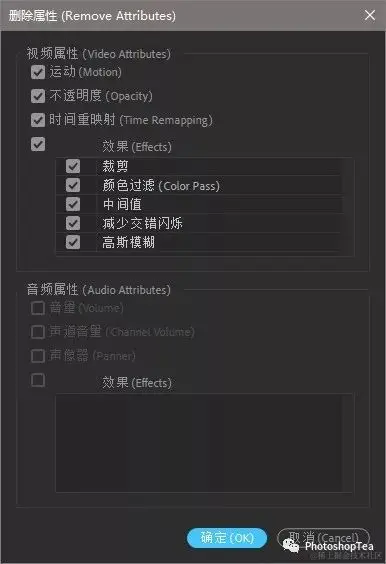 如果要快速删除多个效果:选中剪辑后右击,选择“删除属性”。