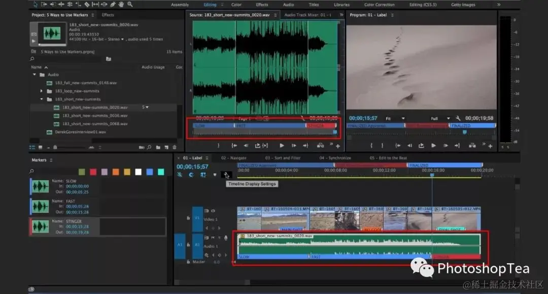 标记 Marker,指示重要的时间点,有助于定位和排列剪辑。