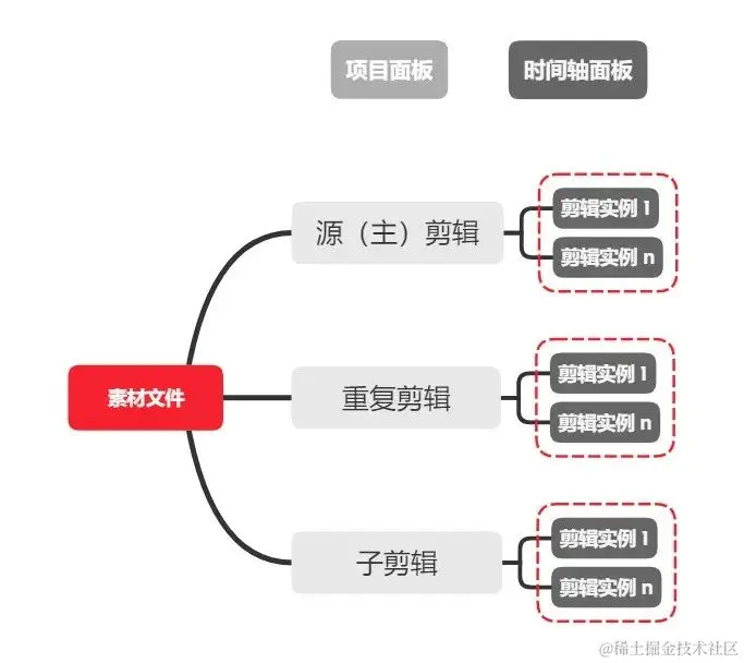 导入素材文件到项目时,会创建一个与之相关联的“剪辑”。把“剪辑”插入到序列中,又会创建一个与“剪辑”相关联的“剪辑实例”。“剪辑实例”可被分割,也可以嵌套、编组或链接。